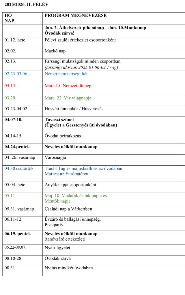 12.22-01.02.Téliszünet (mindkétóvodazárva) Dec. 24. Áthelyezettpihenőnap – Dec. 13.